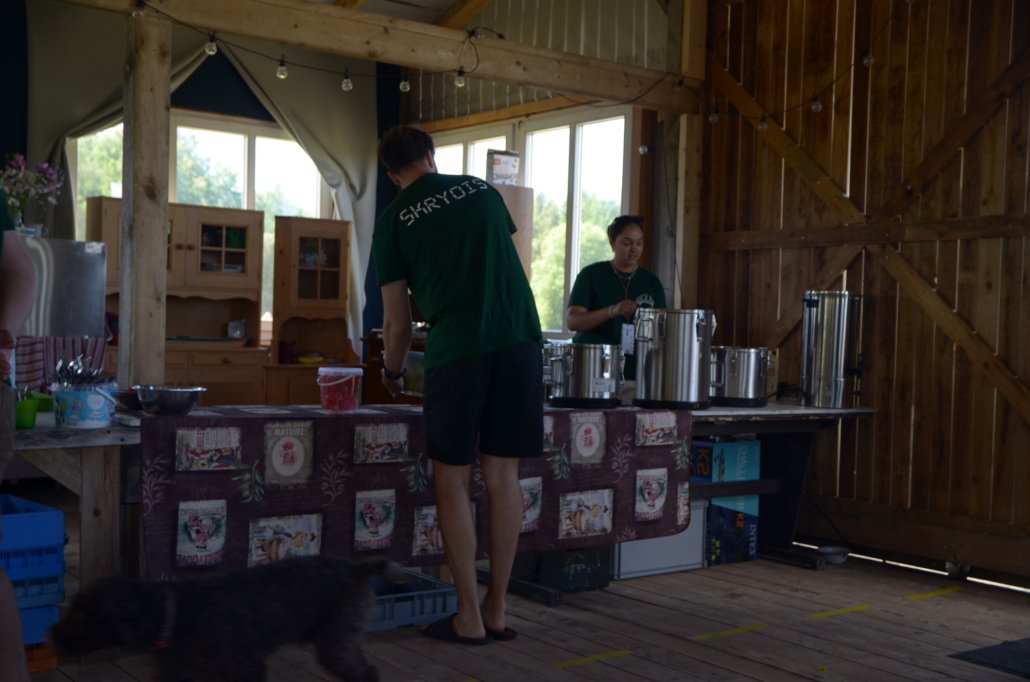 Stovyklautojai nakvoja palapinėse, tačiau yra visi kiti patogumai: tualetai, dušai, valgykla, ir net maudymosi vieta.